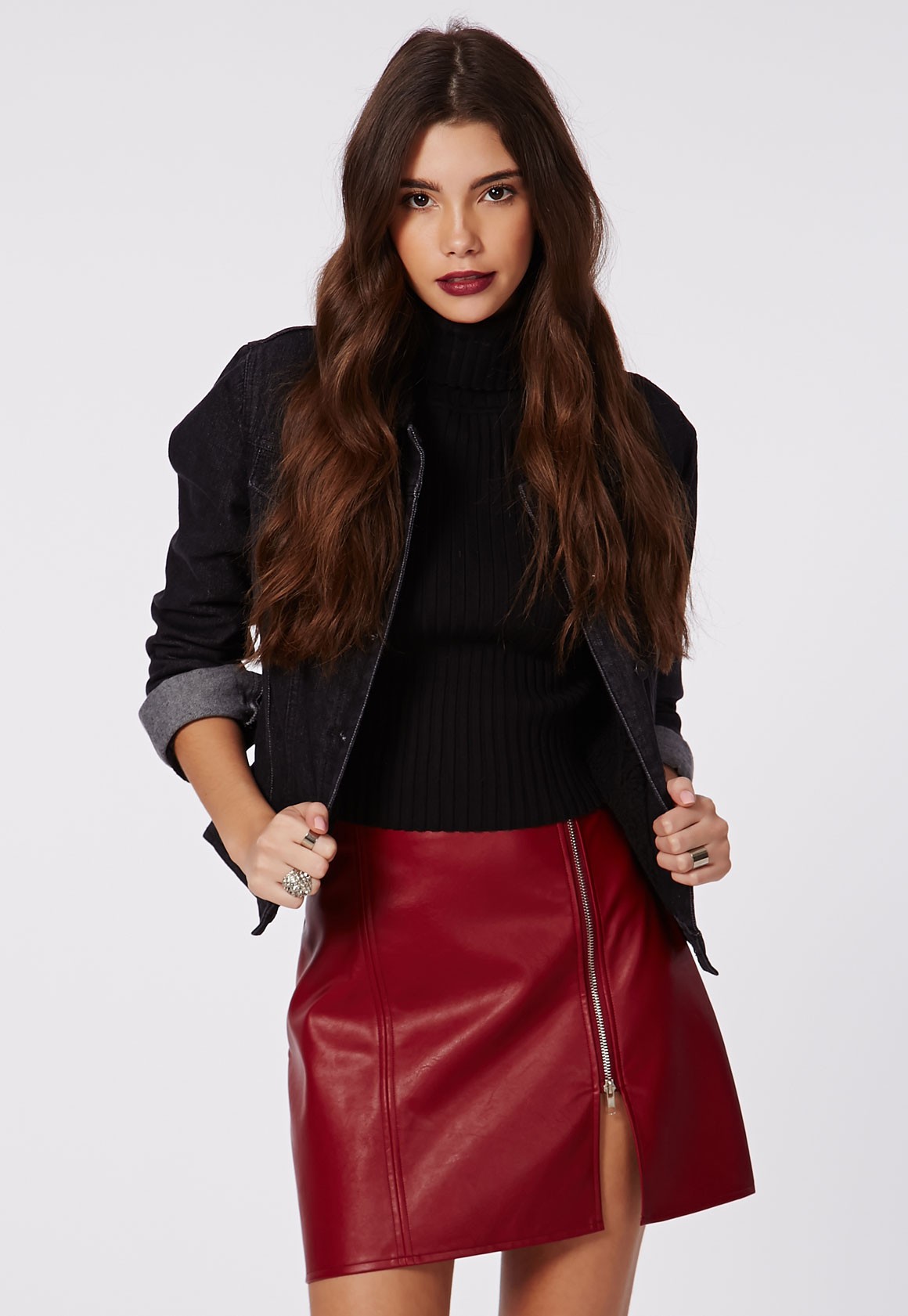 Missguided Naomi faux leather zip A-line skirt burgundy £19.99